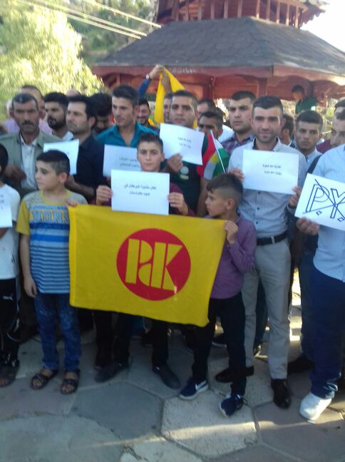 و ندد المتظاهرين بالأعمال الـ PYD الإجرامية على عشيرة خێرگا و تحديداً , هجومهم الأخير على قرية "بانێ شكفتێ" تابعة لمنطقة المالكية في محافظة الحسكة الواقعة على حدود اقليم كوردستان .
