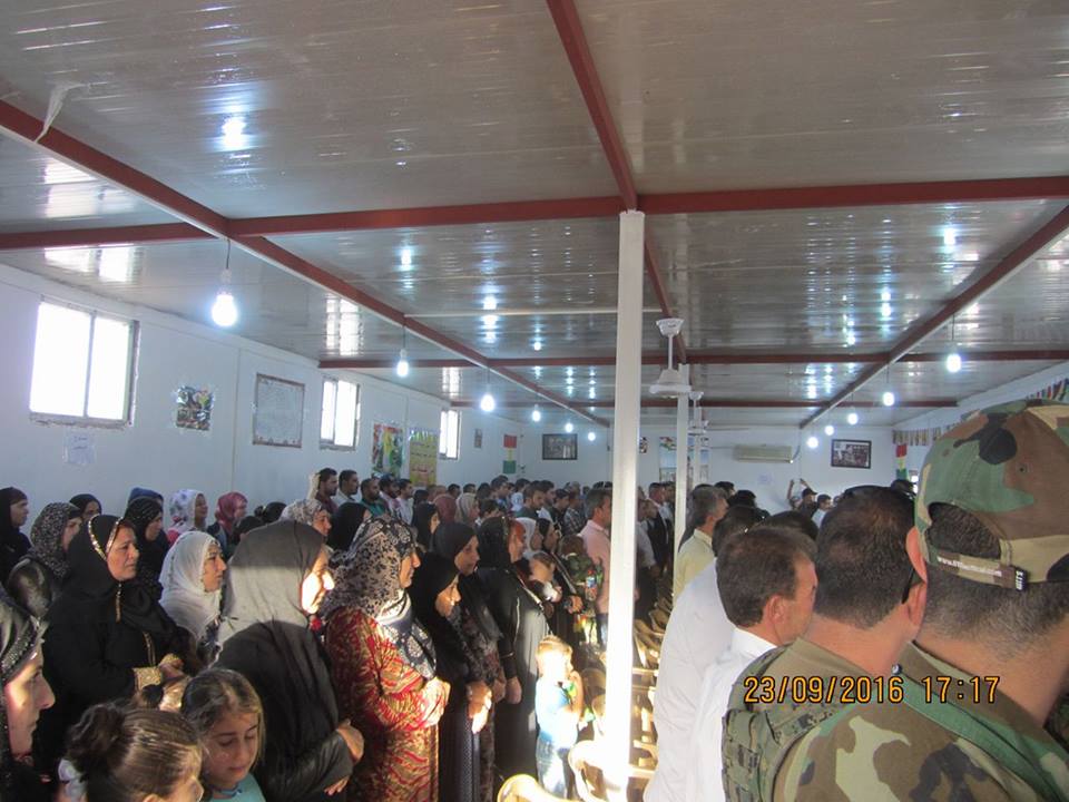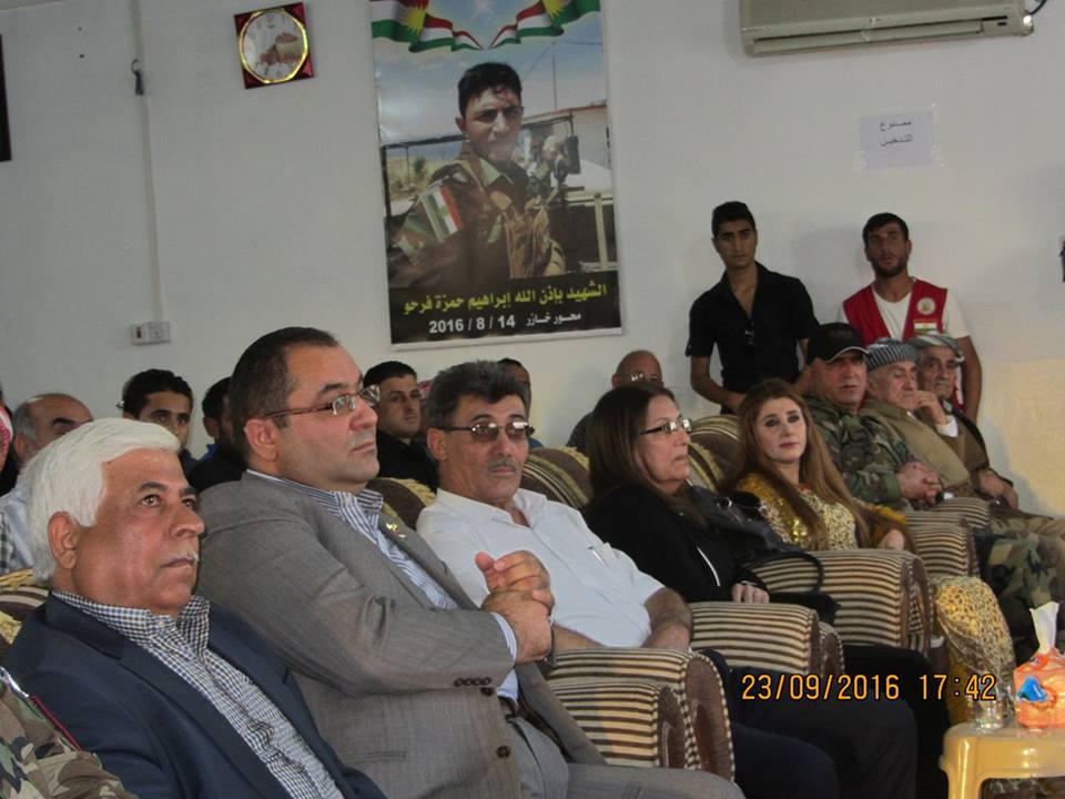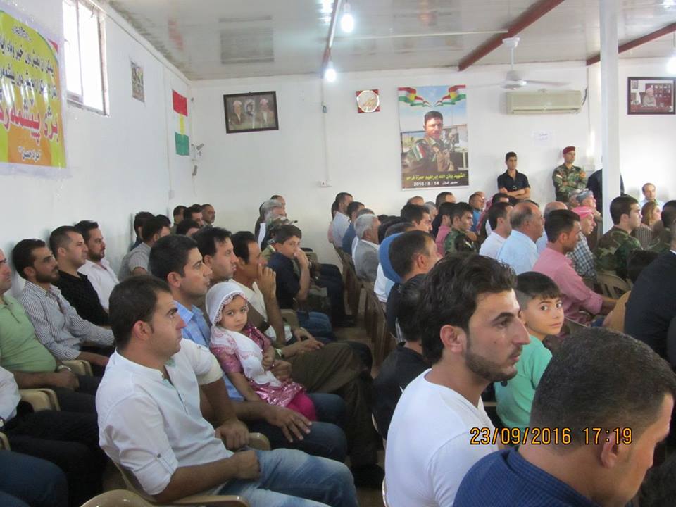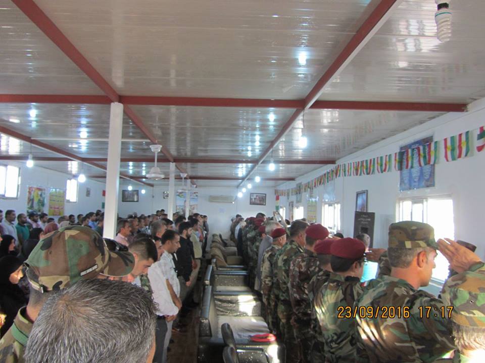 RojavaNews_مخيم فايدة: احييت منظمة دهوك للحزب الديمقراطي الكوردستاني _سوريا , 23/9/2016 في مخيم فايدة بدهوك اربعينية الشهداء الثلاثة الذين استشهدوا في محمور خازر ضد التنظيم الارهابي داعش (ابراهيم حمزة فرحو والشهيد كاميران حسين ،والشهيد حبيب قدري ), بمشاركة اهالي المخيم ،وحضور قيادات من الحزب الديمقراطي الكوردستاني ،ووفد من قيادة قوات الزيرفاني برئاسة اللواء بهجت .