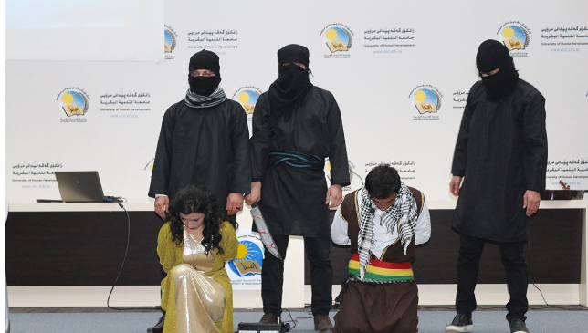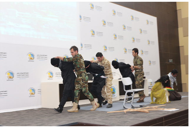 RojavaNews: قامت اليوم 9/2/2017, مجموعة من طلبة الكورد السوريين في جامعة التنمية البشرية بمدينة السليمانية , بتقديم عرض مسرحي, بمناسبة ذكرى الثانية لتحرير مدينة كوباني من التنظيم "داعش" الإرهابي.