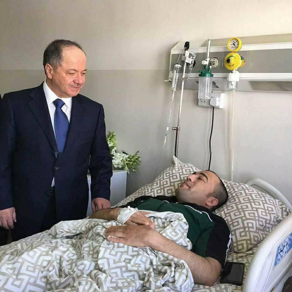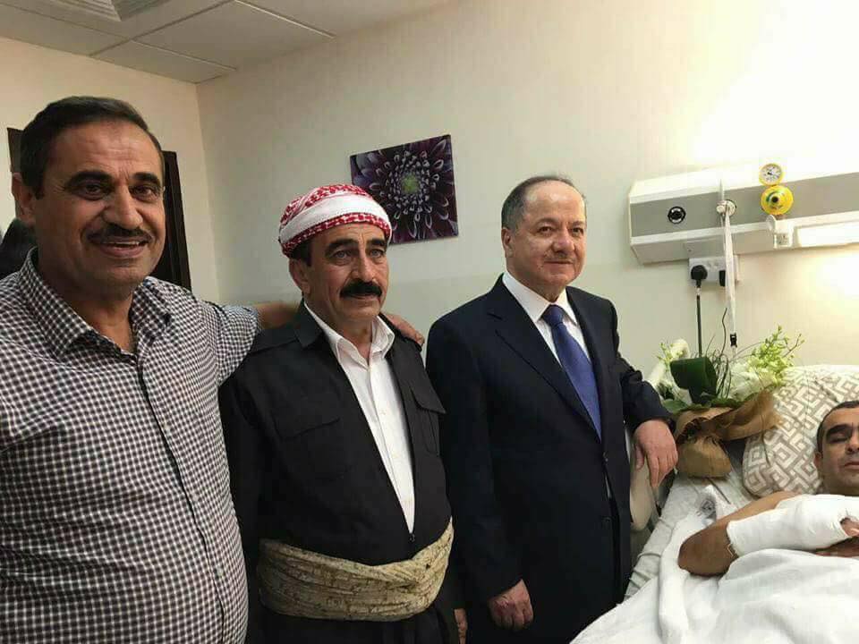 RojavaNews: أجرى رئيس إقليم كوردستان مسعود بارزاني يوم امس الخميس 18. 5. 2017 جولة في احد مستشفيات عمّان لتفقد عدد من جرحى البيشمركة الذي أصيبوا بفعل القصف التركي الأخير على بلدة سنجار غرب مدينة الموصل.