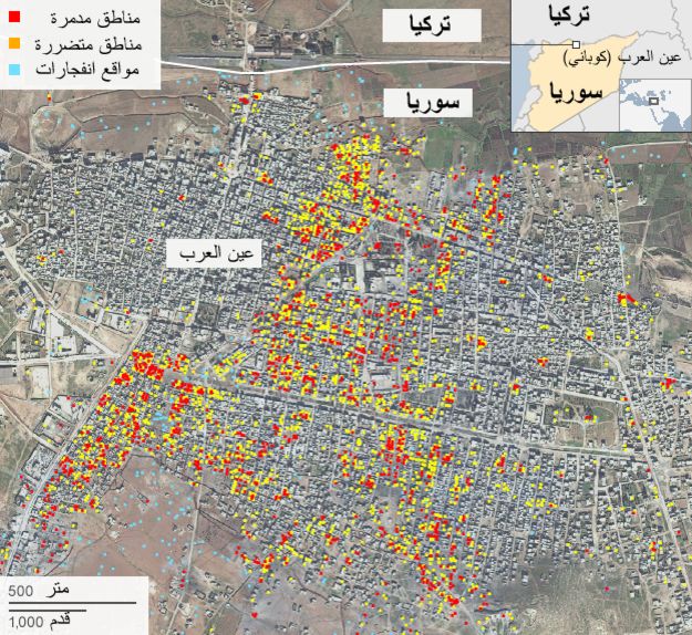 Rojava News: أشار تحليل للصور التي إلتقطتها الأقمار الإصطناعية أجرته الأمم المتحدة إلى أن أكثر من 3 آلاف مبنى دمر أو أصيب بأضرار كبيرة جراء القتال الذي استمر 4 شهور في بلدة (كوباني).
