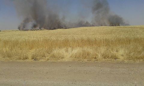 RojavaNews: نشب حريق في إحدى الأراضي الزراعية بمحصول القمح في قرية الاقوس التابعة لناحية جل اغا اليوم الاحد 06.11. 2017 .