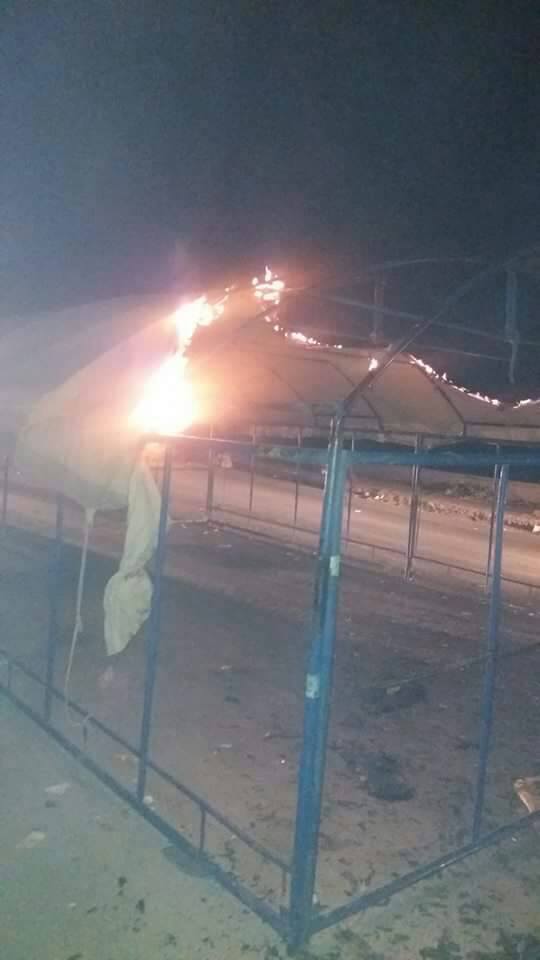 RojavaNews: اضرم مجهولون النار في الخيمة التي نصبت من قبل اهالي قامشلو المطالبين بتوصيل الكهرباء ليلية امس الاربعاء 28 . 6 . 2017 .