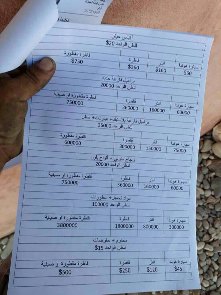 واضافت المصادر : القائمة الخاصة بالضرائب الجمركية التي اعلنتها الادارة الذاتية التابعة للـ PYD يختلف فيها حجم الضريبة بحسب نوع البضائع، فالأجهزة الكهربائية يصل جمركها إلى 100 دولارٍ أمريكي للطن ومثلها الألبسة، وقطع السيارات إلى 150، ومواد التجميل والعطورات إلى ما يقارب من 200 دولار، في حين يدفع تجار المواد المنزلية 75 دولاراً عن كلّ طنٍ من بضائعهم .
