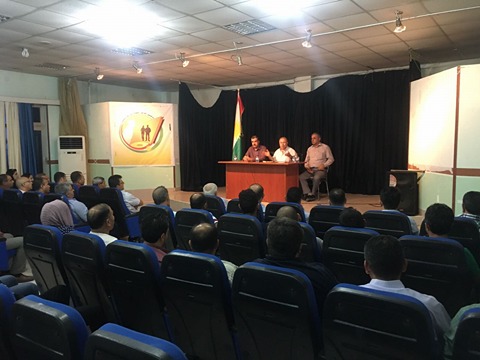 RojavaNews:نظمت يوم امس الاربعاء منظمة ريف هولير للحزب الديمقراطي الكوردستاني _سوريا ,بقاعة اتحاد الشباب الديمقراطي الكوردستاني في هولير , ندوة سياسية لمجالس الفروع بمنظمة ريف هولير للحزب،بهدف الاطلاع على اخر المستجدات السياسية على الساحة " العالمية , الشرق الاوسط ,الكوردستانية " , والتغيرات التي طرأت على المواقف الدولية , والمعارضة السورية ازاء مسقبل سوريا .