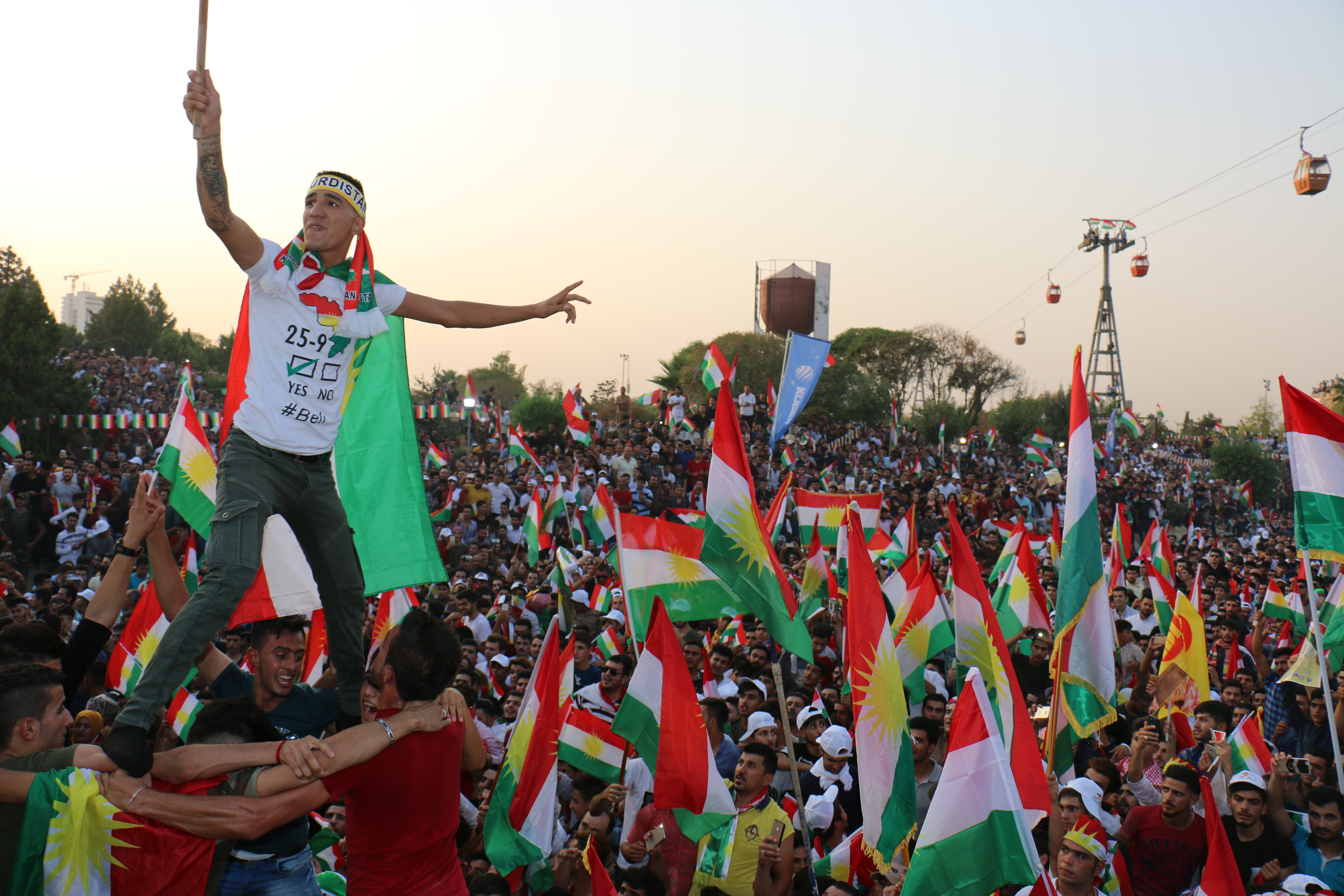 RojavaNews :لأول مرة في التاريخ الكوردستاني الحديث,تجمع أكثر من 20 ألف كوردستاني من الأجزاء الأربعة من كوردستان ,في كرنڤال إحتفالي غير مسبوق, و حدث ٍ تاريخي ٍ للشعب الكوردي,عصر اليوم السبت 16 أيلول 2017 وإحتفلوا دعما ً لإستفتاء إستقلال إقليم كوردستان , في حديقة شانَدَر, في العاصمة الكوردية هولير.