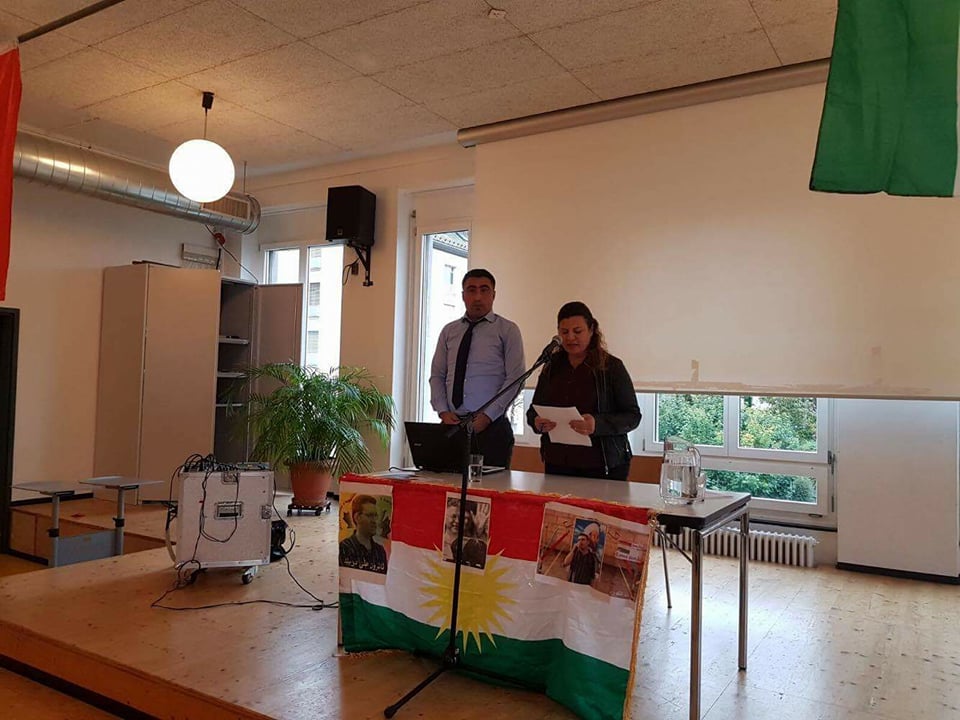 RojavaNews:أقامت محلية سويسرا للمجلس الوطني الكوردي في سوريا حفل تأبين لشهيد الكلمة الشهيد مشعل تمو بالذكرى السادسة لاستشهاده، يوم الاحد الموافق 8 / 10 / 2017 في مدينة زيورخ السويسرية، بحضور عدد من الاحزاب الكوردية والشخصيات الوطنية. بدأ التأبين بالوقوف دقيقة صمت على روح الشهيد مشعل تمو مع عزف النشيد الكوردي أي رقيب، وتلتها كلمة المجلس الوطني الكوردي في سوريا حيث أكد فيها على الشباب الكردي بان لا ينسوا شهدائهم الذين سطروا دماءهم ليعيش شعبهم، وإنه لا يمكن ان تذهب دماء الشهداء هباء منثورة وسيساق القتلة إلى محكمة الشعب العادلة. هذا والقى مندوبي الاحزاب الكوردية والشخصيات الوطنية كلماتهم، عن الشهيد مشعل تمو ومواقفه الجريئة التي دفع حياته ثمناً لها.