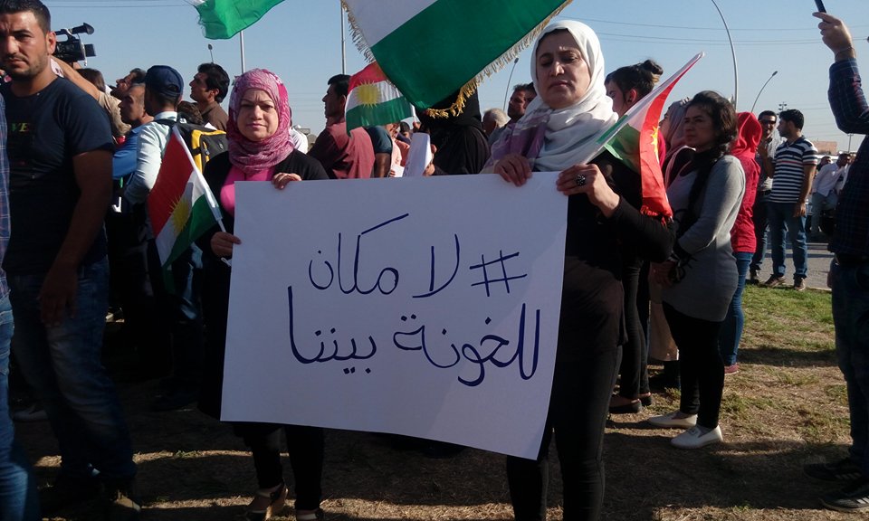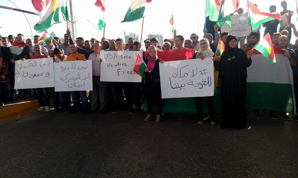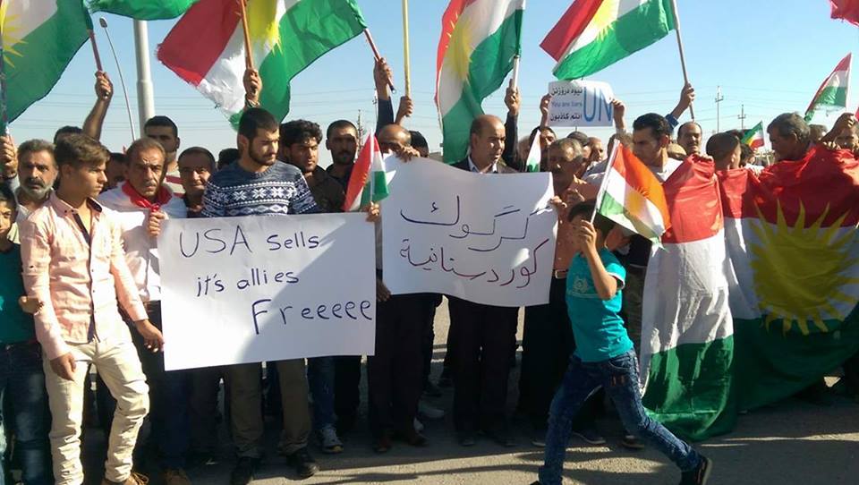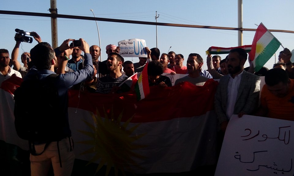 RojavaNews: إعتصم مئات الكوردستانيين أمام مقرالمفوضية السامية لشؤون اللاجئين (UN )في هولير, يوم الثلاثاء 17تشرين الثاني 2017، تنديداً بصمت الأمريكيين والتحالف الدولي حيال ما يجري في كركوك ومناطق أخرى من اقليم كوردستان .