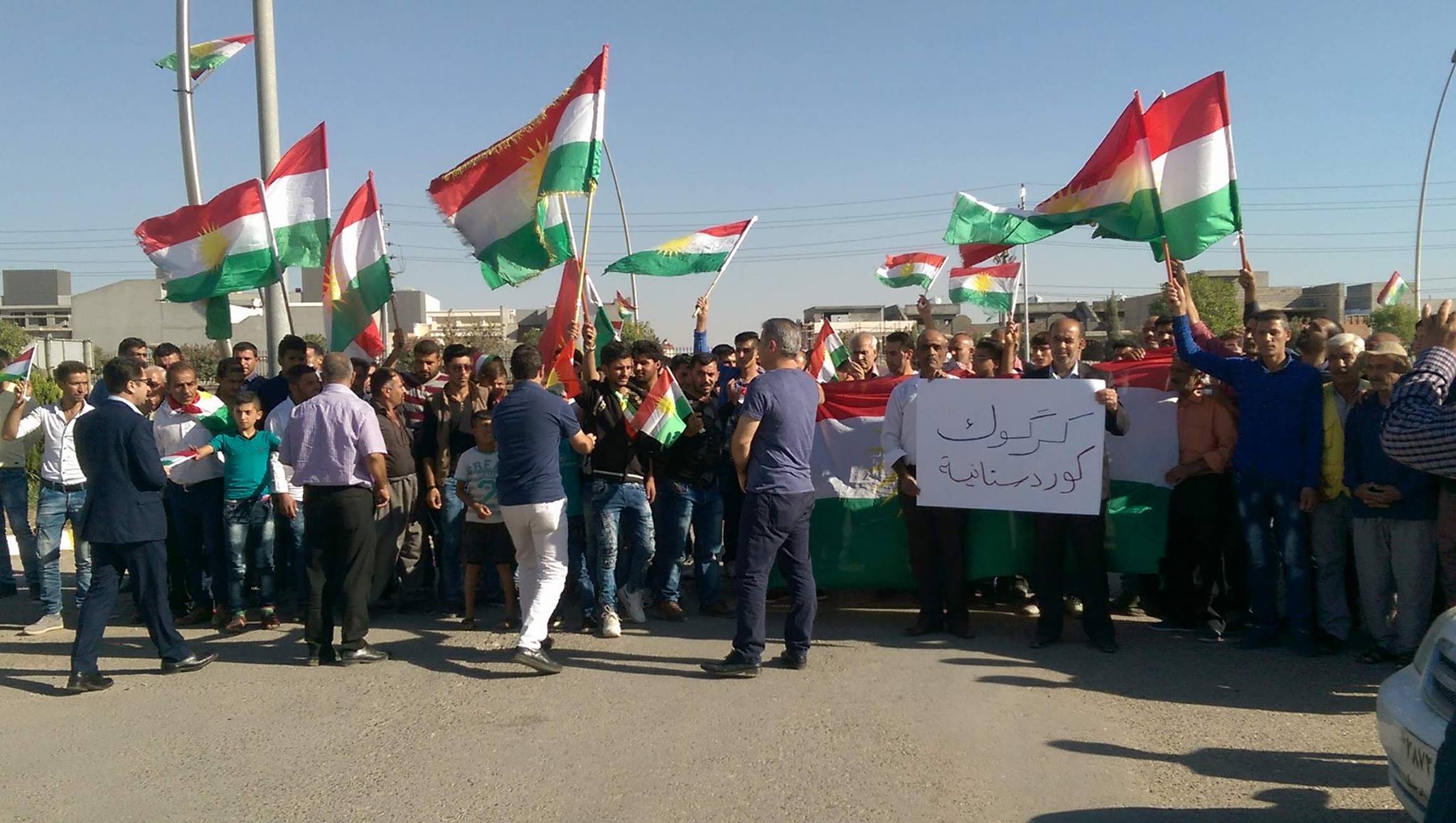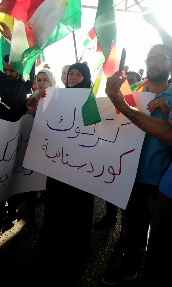 و نادى المعتصمون، بتدخل التحالف الدولي، ,لوضع حدٍ للحشد الشعبي الإيراني ,ورفعوا شعارات ,كتبوا عليها "كركوك كوردستانية " ,كما عبروا عن غضبهم تجاه الخيانة التي قامت بها أطراف كوردية ,لتسليم كركوك الى الحشد ,الذي بدا أكثر وحشية من تنظيم داعش بحسب ما عبروا عنه .