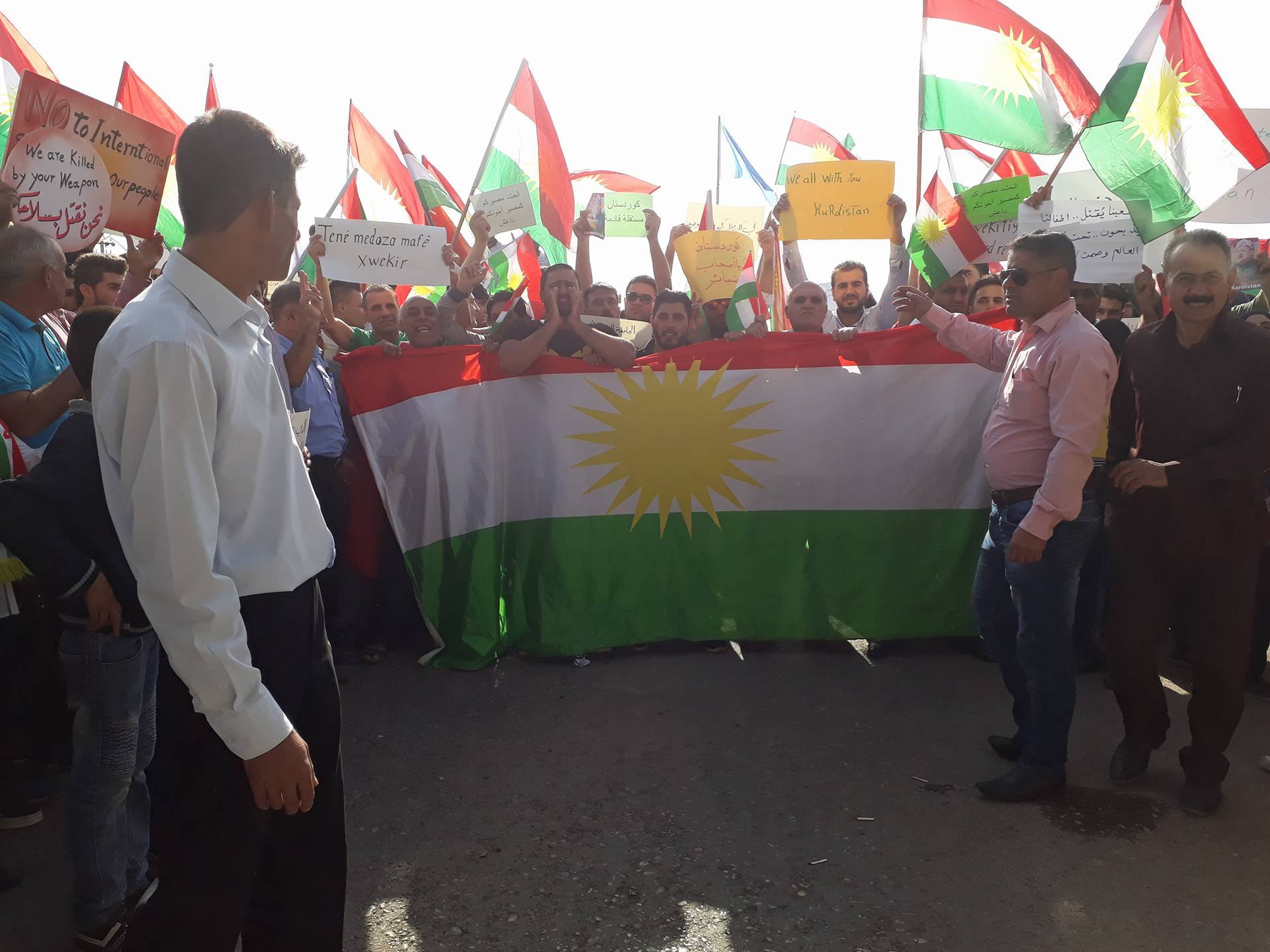 الرئيس مسعود بارزاني كان قد دعا جميع الكوردستانيين المقيمين في أوروبا وأمريكا بدعم الشعب الكوردي عبر الطرق القانونية والسلمية، وتنظيم تظاهرات ونشاطات مدنية، وطلب الدعم من شعوب الدول التي يقيمون فيها وإيقاف هذه الحرب والحصار المفروض على شعبنا بأقرب وقت.