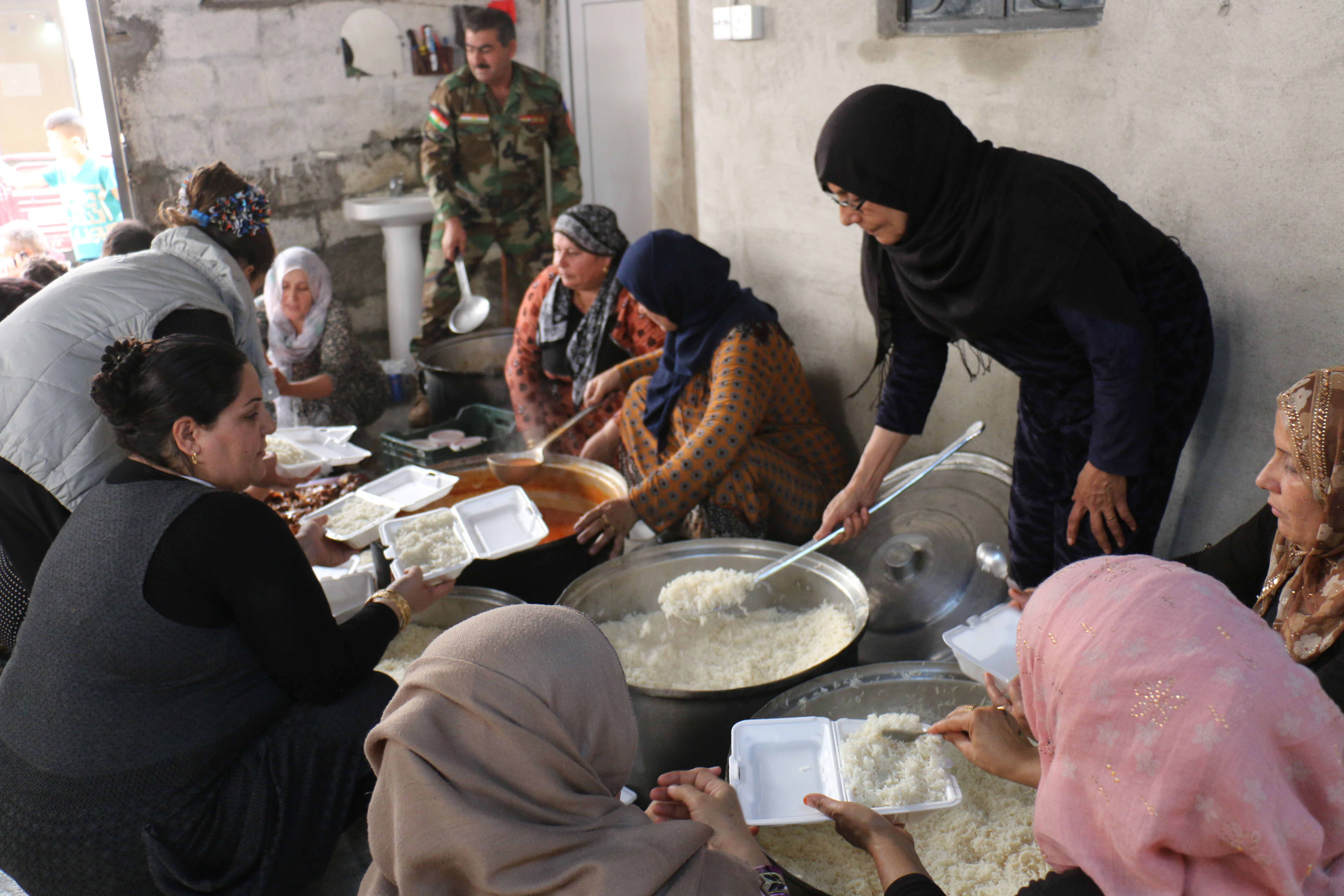 وقام فرع المرأة بتحضير هذه الوجبة في عملٍ جماعيٍ له داخل المخيم,حيث بدأنّ التحضير منذ الساعة الخامسة صباحاً حتى الانتهاء في 11 ظهراً ,كدافع ٍتشجيعيٍ معنويٍ لقوات الپيشمركَة التي سطرت ملاحم بطولية في محور پردى ,وأحبط هجوم ميليشيات الحشد الشعبي والجيش العراقي على كوردستان ,وكبدتهم خسائر فادحة ,إنسحبوا على إثرها بعد هزيمة نكراء
