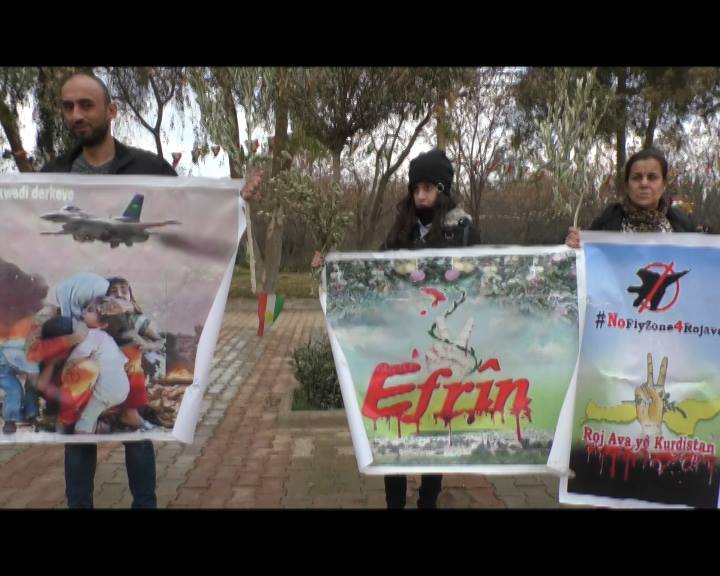 RojavaNews :بالتزامن مع اجتماع لبرلمان إقليم كوردستان، حول ما يجري في عفرين، تظاهر المئات من أبناء كوردستان سوريا، الثلاثاء،30 كانون الثاني 2018 ،في وقفة تضامنية مع عفرين ،وللتنديد بالقصف التركي عليها ،الذي طال المدنيين من أطفال ونساء.
