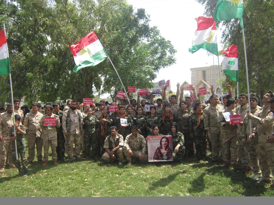 Rojava News ـ هولير: شهدت مدينة هولير اليوم الأحد 10-5-2015 مظاهرة احتجاجية أمام برلمان كوردستان، للتنديد بمقتل الفتاة الكوردية (فريناز خسرواني) التي ألقت بنفسها من الهوتيل الذي تعمل فيها هرباً من محاولة اغتصاب من قبل عنصر استخبارات إيراني في مدينة "مهاباد" بشرق كوردستان.