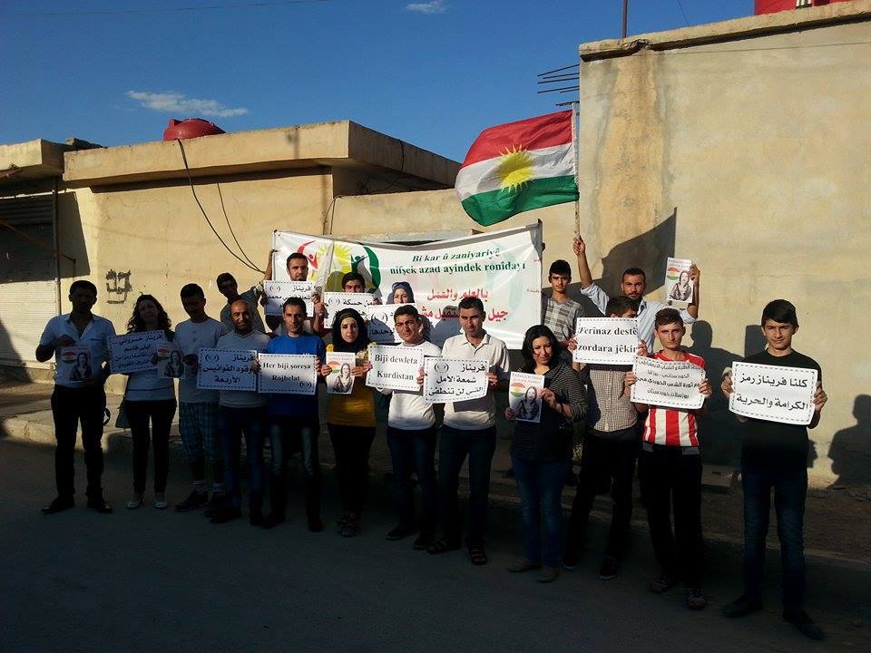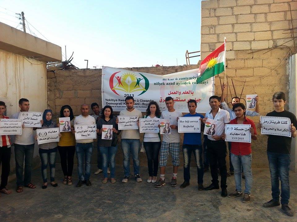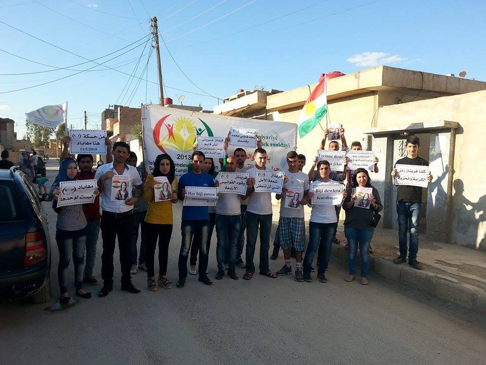 Rojava News ـ الحسكة: أقام فرع الحسكة لإتحاد الطلبة والشباب الديمقراطي الكوردستاني-روژ آفا وقفة احتجاجية أمام مكتب الفرع في حي الصالحية تضامناً مع ثورة الشعب الكوردي في روژهلاتي كوردستان التي أوقدتها فريناز خسرواني في وجه الغاصبين لكوردستان.