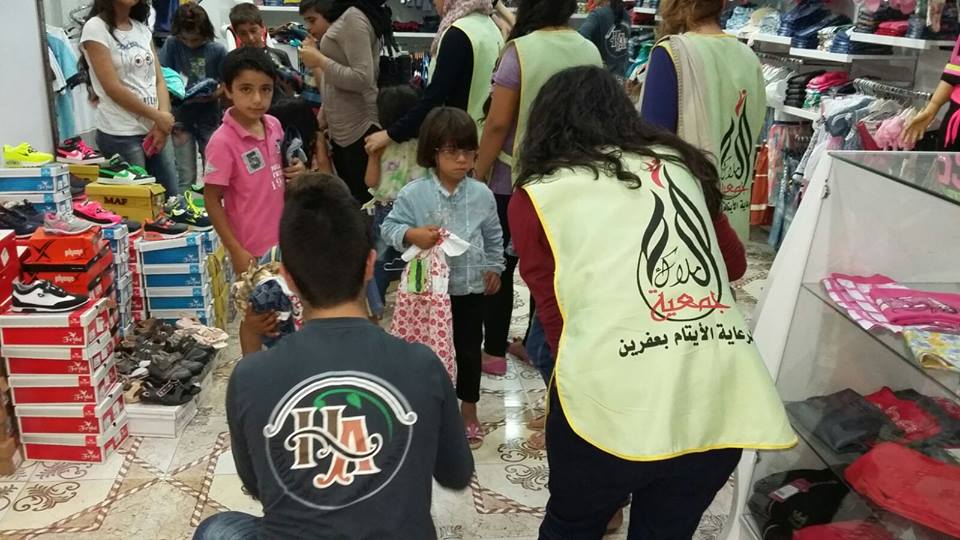 Rojava News ـ عفرين: ضمن حملة إكساء فرحة العيد للأيتام قامت جمعية الملاك الخيرية لرعاية الإيتام بعفرين بإكساء 13 طفل يتيم.