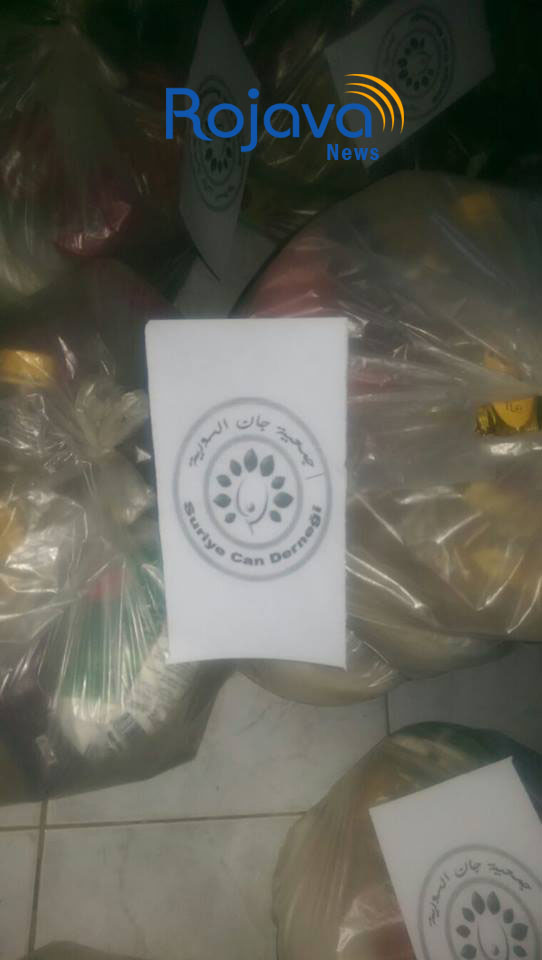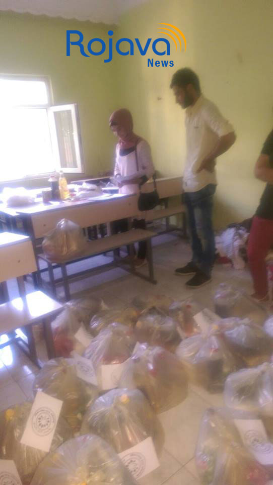 RojavaNews : بادرالمكتب الاغاثي لجمعية جان السورية بتوزيع سلات غذائية على اللاجئين السوريين في نصيبن في نصيبين يوم امس 15 . 7 . 2015 .