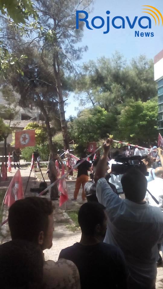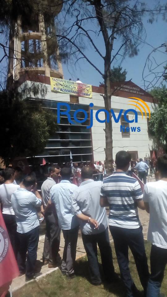 Rojava News ــ سروج: أفاد الناشط شيرو علو من مدينة سروج لـ Rojava News :" بأن حوالي 5 آلاف شخص تجمعوا في مكان التفجير الإرهابي بمدينة سروج بانتظار وصول رئيس حزب HDP صلاح الدين دمرتاش ليقوم بواجب العزاء وإلقاء كلمة عن موقف حزبه من العملية الإرهابية التي نفذها إرهابي داعش ".