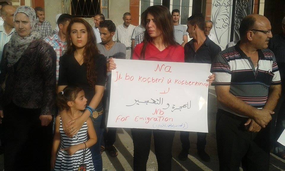 حيث حضرها رئيس المجلس الوطني الكوردي في سوريا ابراهيم برو وقيادات المجلس وجمع غفير من المواطنين الكورد في مدينة قامشلورافعين شعارات ولافتات تدعو الى منع الهجرة وعدم تفريغ المنطقة الكوردية وصور الطفل ايلان الذي غرق في بحر ايجة.
