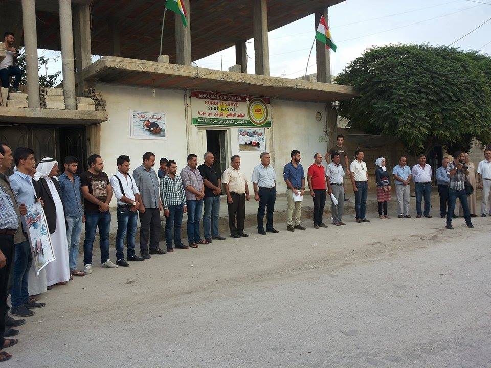 RojavaNews : بدعوة من المجلس المحلي في سري كانيه للمجلس الوطني الكوردي وتحت شعار "لا للهجرة" خرج اهالي مدينة سري كانيه عصر اليوم 5-9-2015 في تمام الساعة السادسة في وقفة اعتصامية امام مقر المجلس المحلي - شارع "آزادي" تنديداً بظاهرة الهجرة من مدن وبلدات كوردستان سوريا.