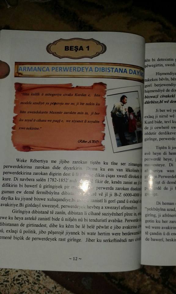 Rojava News: قام عدد من النشطاء بترجمة إحدى صفحات المناهج الدراسية (الجديدة) التي فرضها حزب الإتحاد الديمقراطي (ب ي د) على المرحلة الإبتدائية في منطقة عفرين، ونشرها على مواقع التواصل الإجتماعي الفيس بوك.