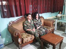 RojavaNews-هولير: قامت اليوم (14/10/2015) حفلة خطوبة بين مقاتلين من البيشمركة رۆژئاڤا من مدينة عفرين في عاصمة اقليم كوردستان "هولير".