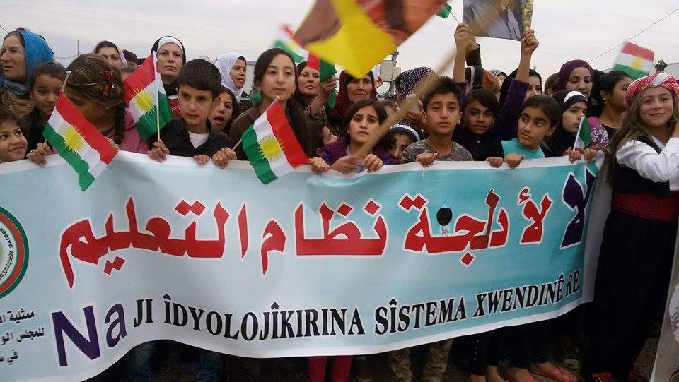 المئات من لاجئي مخيم كوركوسك وبمشاركة وبحضور ممثلية المجلس الوطني الكوردي في هولير اعتصموا ضد ممارسات وسيايات الـ PYD ورفضاً لمشاريعه وسياسته المتمثلة في فرض مناهج تعليمية مؤدلجة و التي تمثل فقط سياسة الحزب المذكور .