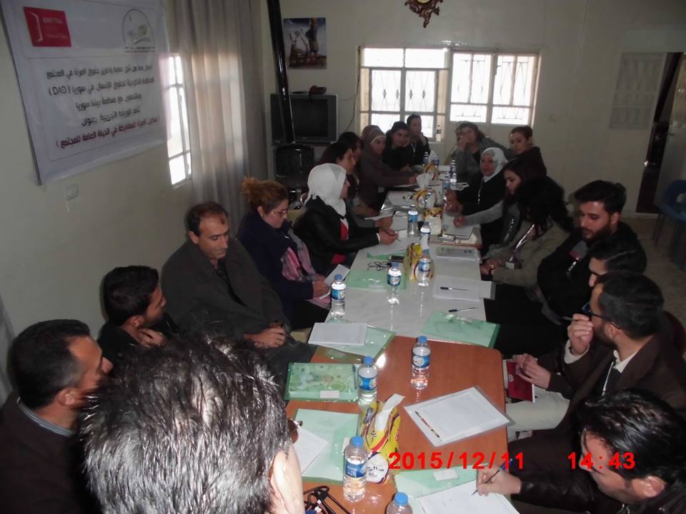 Rojava News: أنهت المنظمة الكوردية لحقوق الإنسان في سوريا ( DAD ) ورشتها التدريبية الخامسة في مدينة تربه سبية في أطار مشروعها الرامي إلى (تمكين المرأة للمشاركة في الحياة العامة للمجتمع) في أطار مشروع متكامل يهدف إلى تنفيذ ست ورش تدريبية في ست مدن أساسية في المنطقة ذات الغالبية الكردية – شمال سوريا، بهدف حماية وتعزيز حقوق المراة في المجتمع من خلال تمكين أعضاء المنظمات والجمعيات المدنية التي تعمل على الدفاع عن حقوق المراة وقد استمرت الورشة على مدار ثلاثة أيام من تاريخ 11 / 12 / 2015 ولغاية 13 / 12 / 2015 في مقر المنظمة الآثورية الديمقراطية في مدينة تربه سبية وقد حضر الورشة 24 ناشط وناشطة من أحد عشر منظمة وجميعة حقوقية مدينة تعمل في مجال تعزيز وحماية حقوق المرأة.