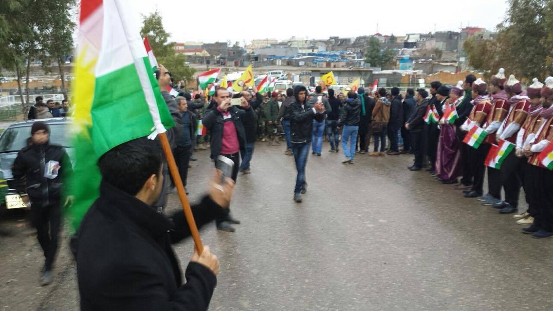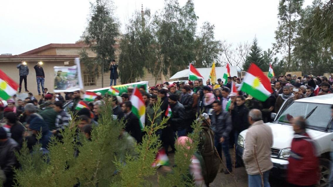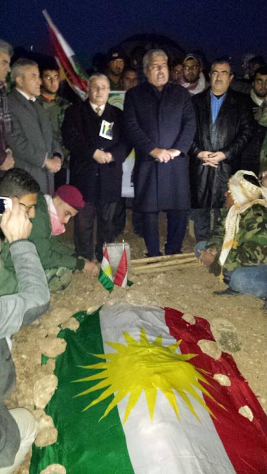 Rojava News ـ هولير: شارك مساء اليوم الثلاثاء 5-1-2016، عدد غفير من مواطني كوردستان سوريا المقيمين في هولير ومخيمات اللجوء، وعدد من ضباط بيشمركة روجآفا ورفاقه من البيشمركة، بمراسيم دفن البيشمركة الشهيد (صلاح الدين سعيد حسو)، في منطقة كسنزان بهولير.
