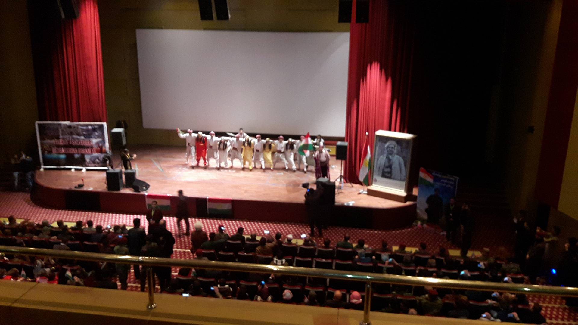 RojavaNews_هولير: بمبادرة من مجموعة من نشطاء كوباني وبمناسبة ذكرى مرور عام على تحرير مدينة كوباني قام في الساعة السادسة من يوم الثلاثاء الواقع في 26/1/2016 مهرجاناً فنيا في هولير عاصمة إقليم كوردستان وذلك على مسرح قاعة بيشوا في مبنى وزارة الثقافة والشباب لإقليم كوردستان , قاعة بيشةوا– هۆڵی پێشهوا - والدعوة عامة.