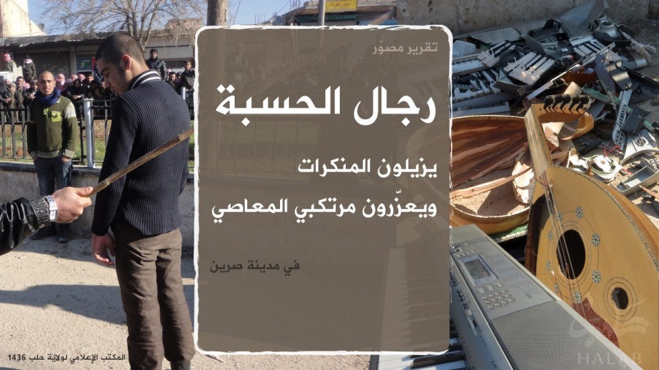 RojavaNews-حلب:نشر اليوم (2015/1/18), المكتب الاعلامي لولاية حلب التابعة لتنظيم داعش الارهابي تقريرا مصورا عن قيام جهاز الحسبة التابع لمسلحي التنظيم في مدينة صرين بإلقاء القبض على اشخاص في المدينة بتهمة انتحال صفة رجال الحسبة وجلدهم "رجال الحسبة يزيلون المنكرات ويعزّرون مرتكبي المعاصي في مدينة صرين ".
