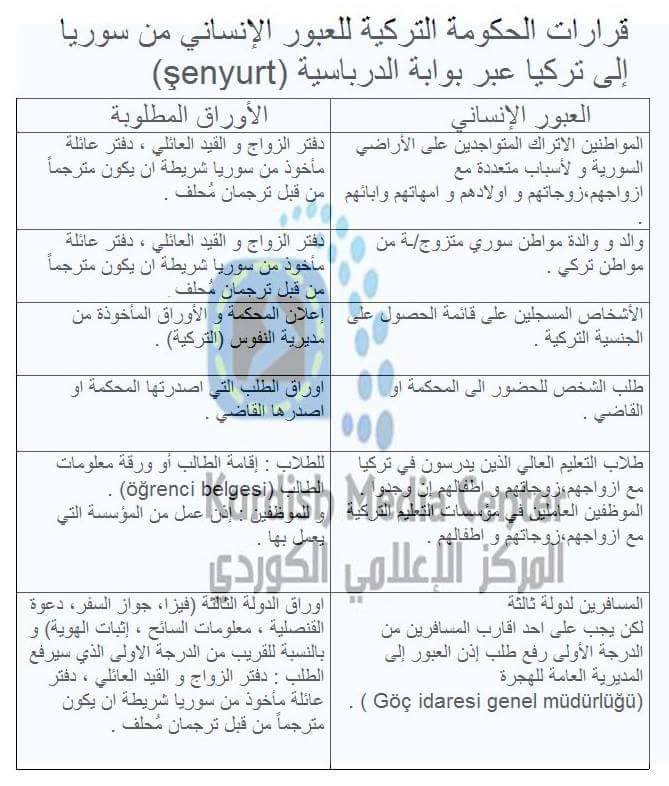 Rojava News ــ تركيا: قامت السلطات التركية بإصدار قرار يسمح للعبور الإنساني من سوريا إلى تركيا عبر معبر درباسية، بعد مضي أكثر من عامين على إغلاق المعبر من جانب الحكومة التركية بوجه المواطنين السوريين الذين يرغبون بالعبور إلى تركيا.