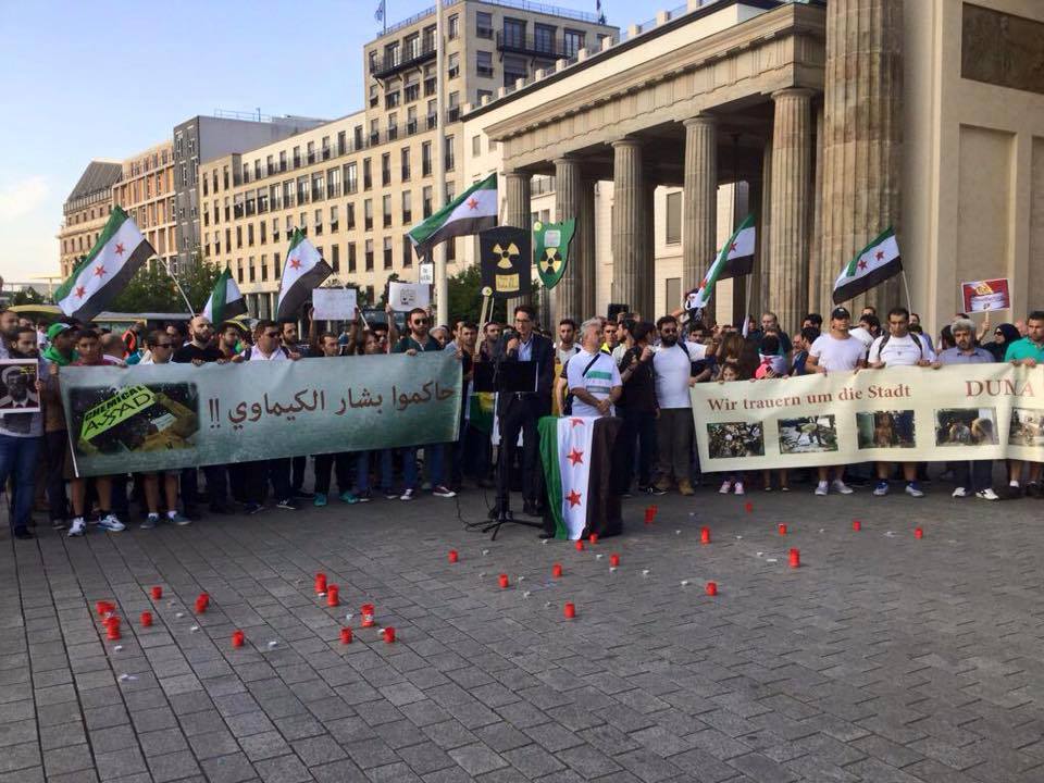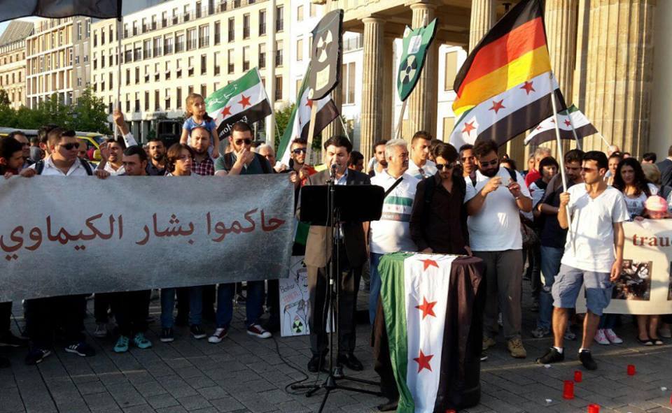 Rojava News: تظاهرت الجالية السورية ومن ضمنهم الكورد السوريون في العاصمة الألمانية برلين وفي العاصمة البريطانية لندن أيضاً، يوم أمس السبت الموافق / 22 / 8 / 2015 /، لأحياء الذكرى السنوية الثانية لمجزرة الكيماوي والمجزرة الأخيرة التي حصلت في دوما، على يد النظام السوري، وراح ضحيتها أكثر من 1400 سوري جلهم من الأطفال والنساء.