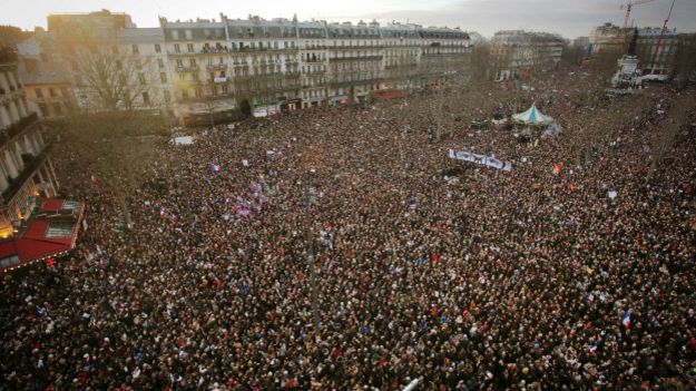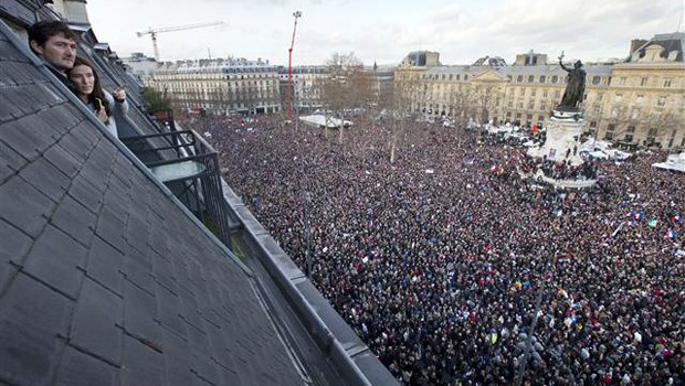 Îro serokên qasî 50 dewletan û serokên hikûmetan bi hezaran kes di saet 15.25an de li Parîsa paytexta Fransayê li hev civiyan ku êrîşa terorê ya ku 17 kes miribûn şermezar bikin. Komê bi navê "Meşa Komarê" meşek dan destpêkirin.