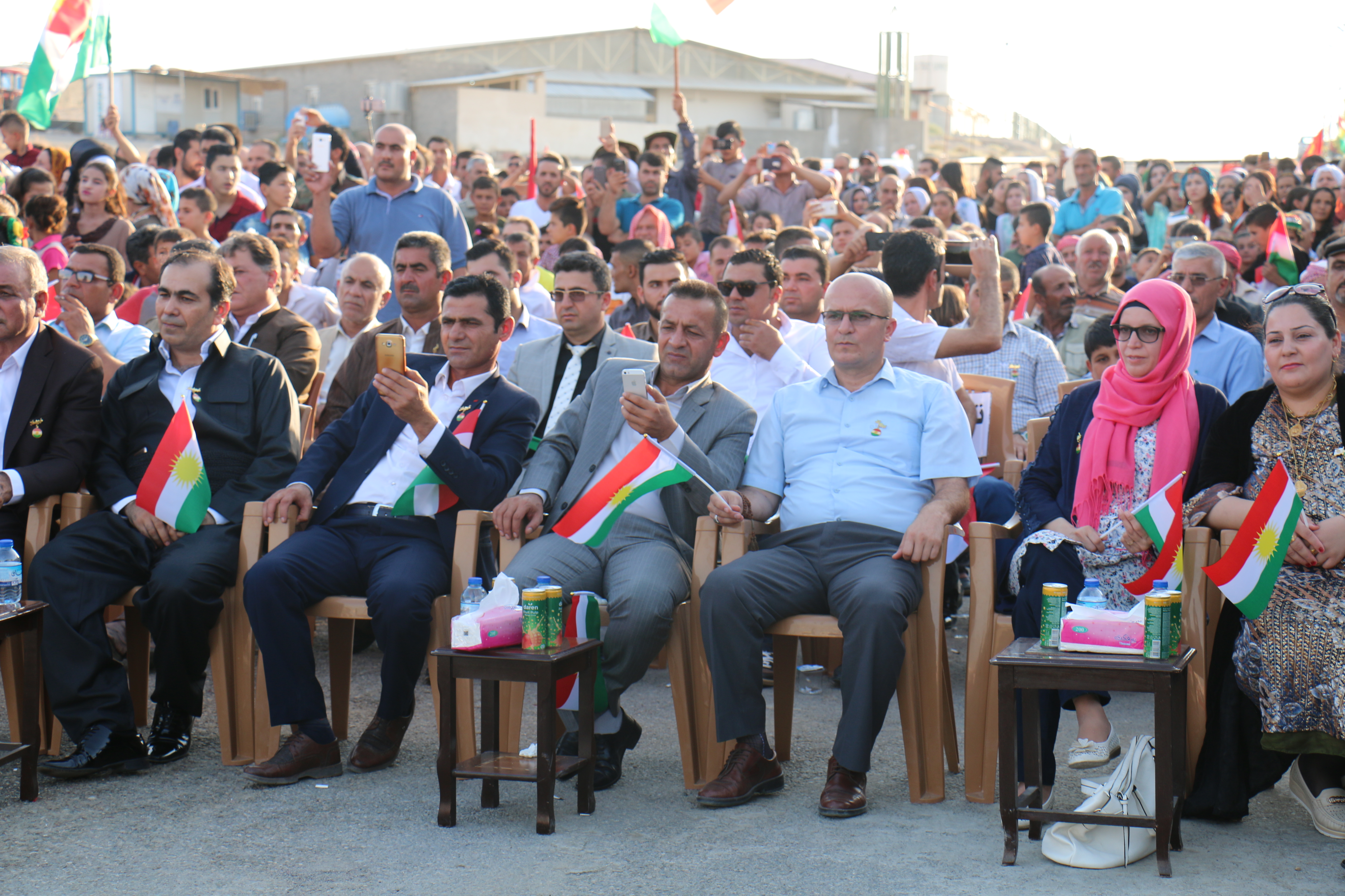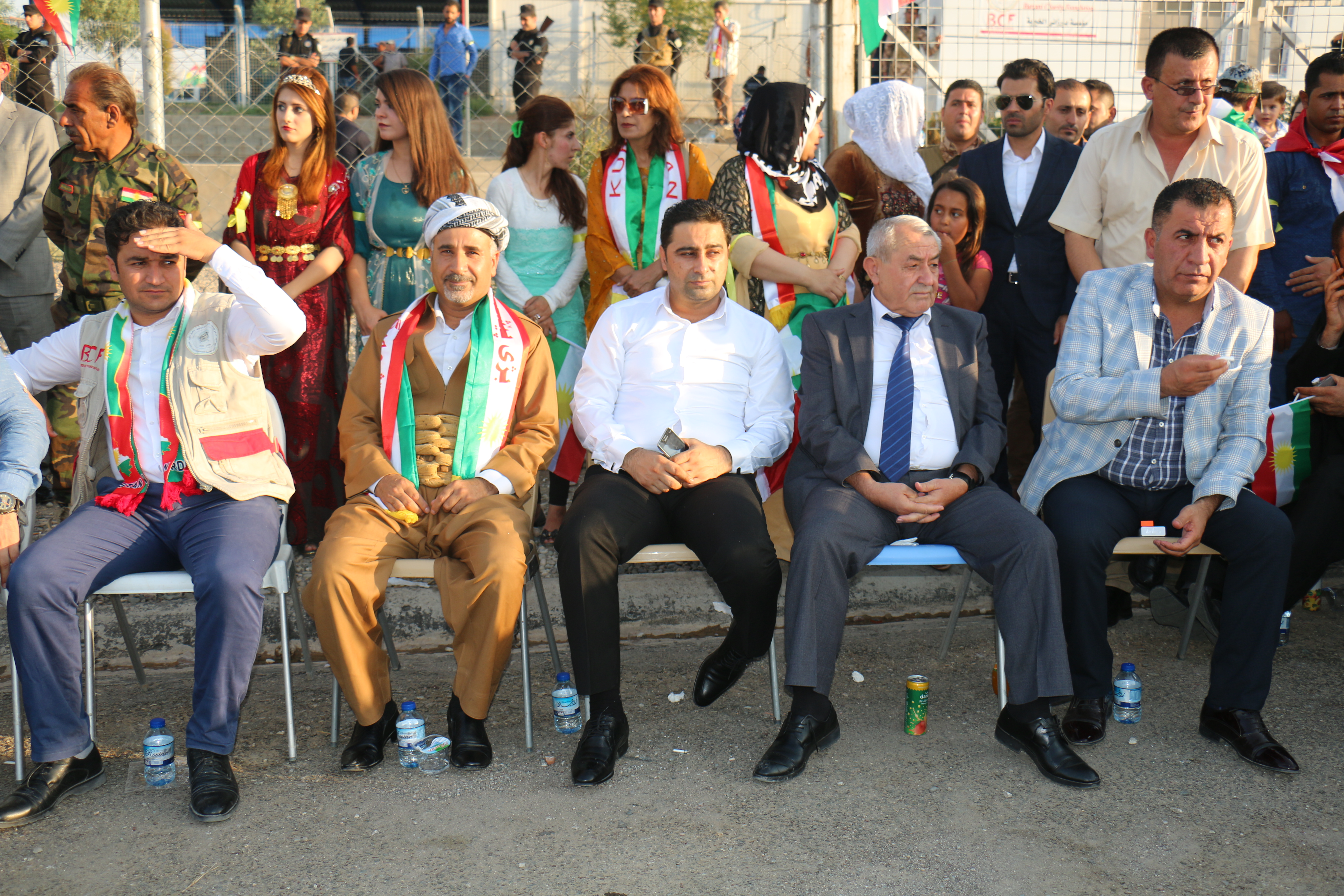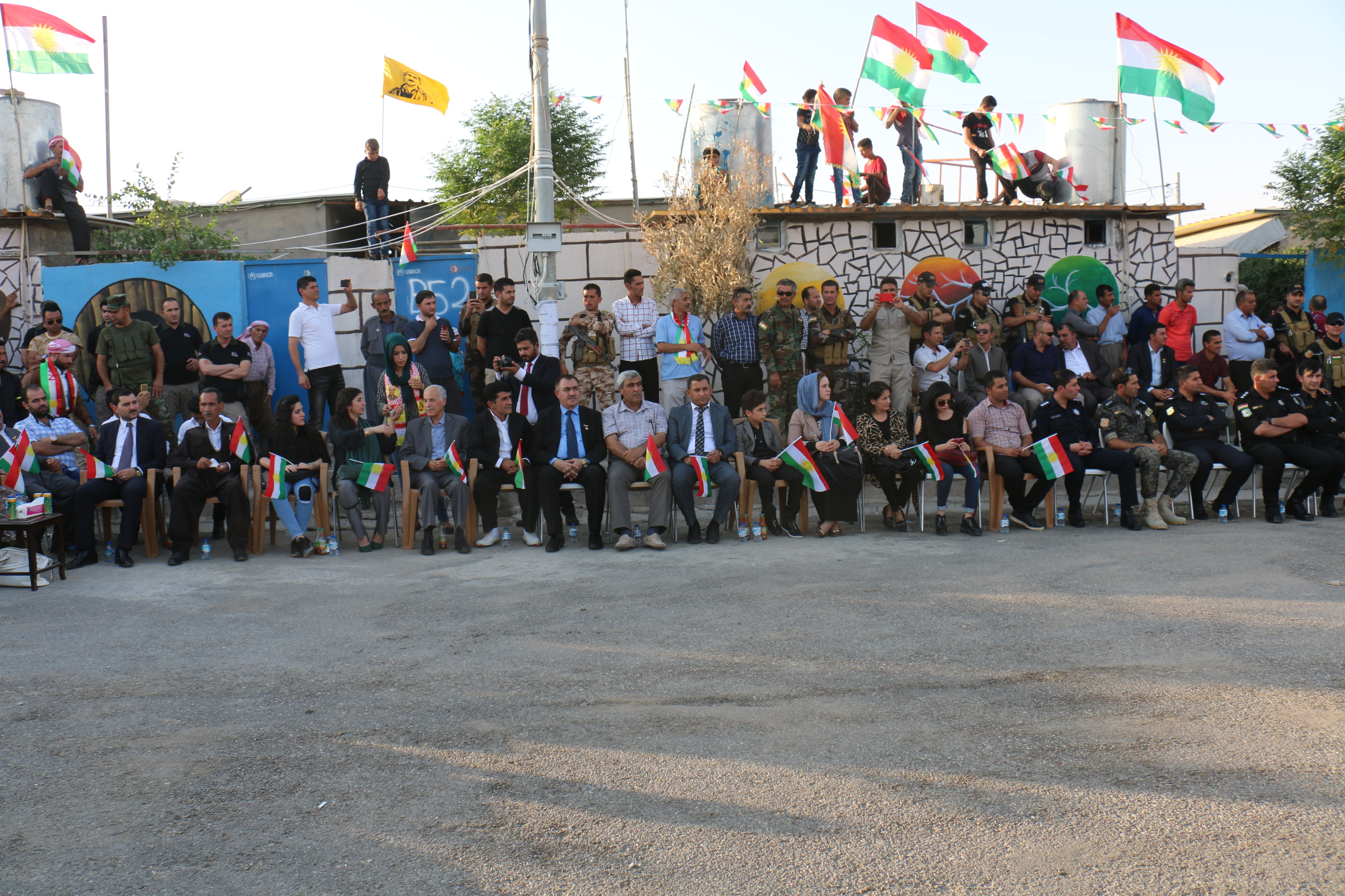 Bi beşdariya Encumena Niştimaniya Kurdî ENk-sê,û endam ,serkirde û alîgirên Partiya Demukrata Kurdistan-Sûriya , Rêxistina Kampa Giwêlan û navçeya hewlêrê û şanda nivîsgeha peywendiyên niştimanî ya PDK-Sê li herêma Kurdistanê,Şandek ji Partiya Demukrata Kurdistana -îraqê PDK ,rêvebiriya dezgeha xêrxwaziya Brzanî û asayîşa kampê ,ahingê bi sirûda netewî ya kurdî ey reqîb dest pêkir.