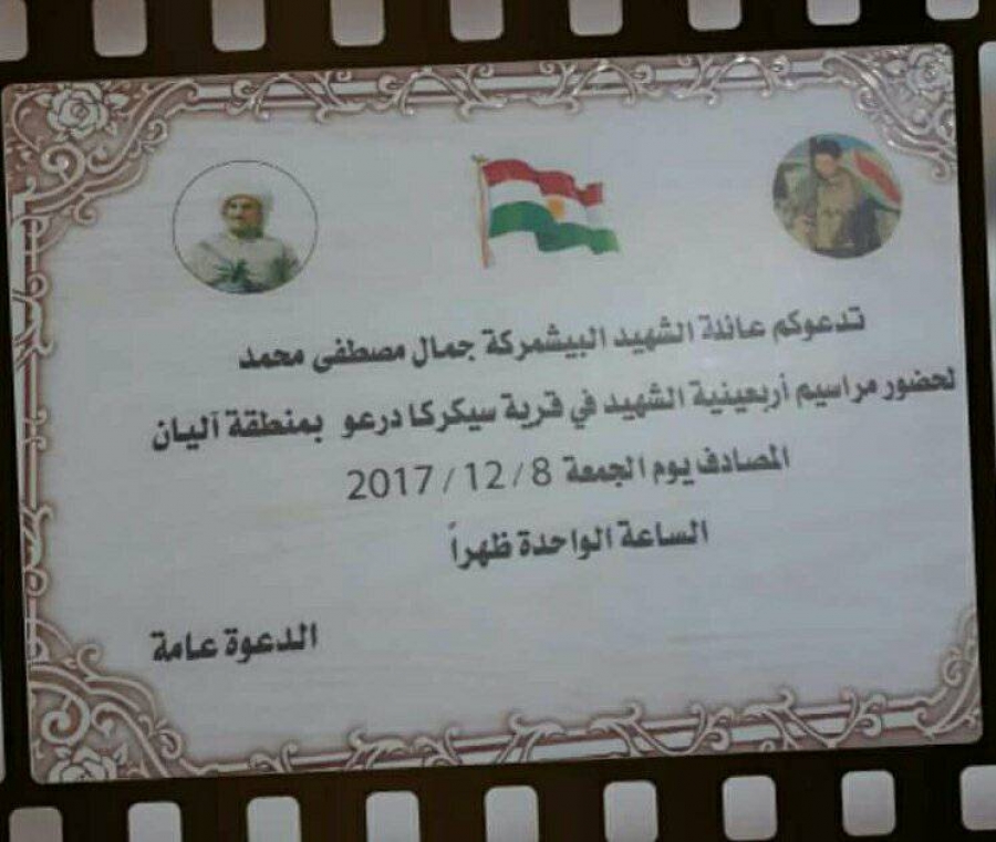 RojavaNewsMalbata şehîdê pêşmerge Cemal Mihemed Mustefa vexwendink ji bo çilrojiya wî belav kir.