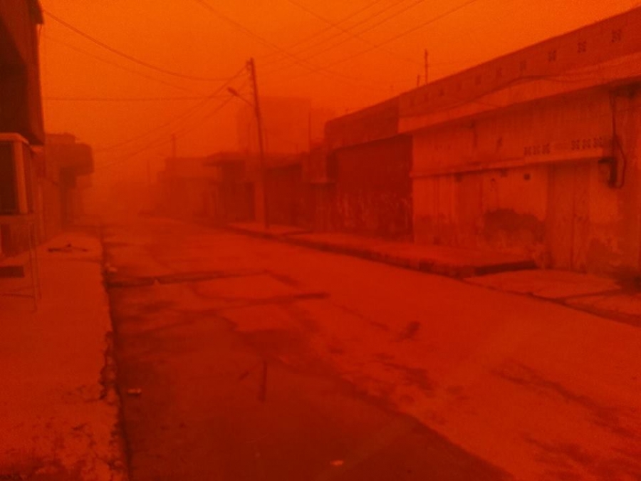 bajar Qamişlo jî ,ji şeveqê ve asîman sor in,ba û baranê jî pişt re destpê kiriye.