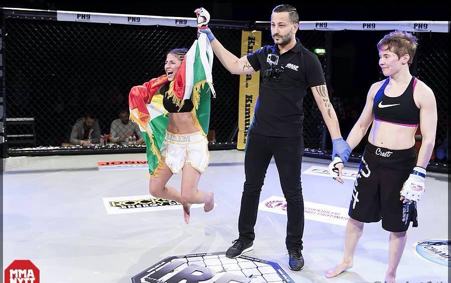 Keça Kurd ya bi nave Îman Darabi di Tirnuwaya stayla serbest ya boksê ya jinan de bi ala Kurdistan dakete rîngê da beranber pêşbazê xwe boksê bike.
