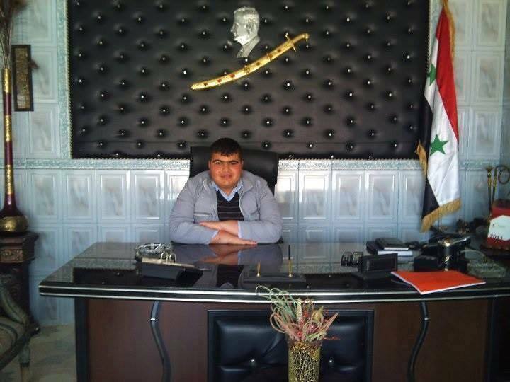 Kurê Salih Mislim li ofîca bavê xwe li Kurdistana Sûriyê li jêr wêneyê Hafiz Esed bavê serokê rêjîma Sûriyê yê diktato û li tenîşte Aleya wê rêjîmê wêneyê xwe kişandiye û belav kiriye.