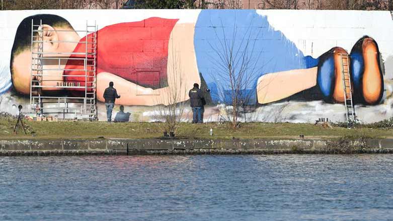 Du xortên wênesaz yên Alman, bi navên Justus Becker û Oguz Şen, wêneya Alanê Kurdî yê ku bere ji aliye Nilufer Demir ve hatibû kişandin û damîrê cîhanê êşandi bû li ser dîwarekî bilindiya wî 5 metr û firehiya wî 25 metir çêdikin.
