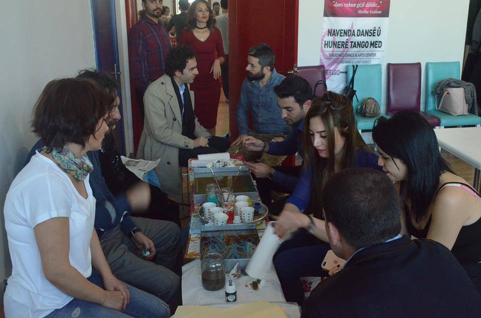Piştî çar salan ev cara yekê bû ez diçûm vê dibistana Tangoyê û Navenda Hunerê a ku Kemal Ciwan Işık û Sevgi Almış bi hev re berî niha bi salan ava kiribûn û hê jî bi rê ve dibirin. Mîna li ciyê wan ê berê ê li Diyar Galeriayê, li ber deriyê vî ciyê nû jî selikeke galoşên plastîk hebû. Min jî cotek galoşên şînik di ser pêlavan re xistin pê û ketim hundir. Li aliyê çepê ê deriyê hundir refeke tije pêlavên tangoyê ên Turkuaz, hem ji bo jinan hem ji bo mêran, cilûbergên dansê ji bo jinan, mîna mirov pê li cîhaneke dî dike li ber mirov disekinin. Li vê cihana nû, li hêwana ronî û fireh a navendê, du remzên nas ji hember de silavê li min dikin: Du portreyên mezin ên du hunermendên jin ên kevn ên Kurd bi ser du deriyan ve daleqandî ne û diyar dikin ku yek jê Salona Leyla Bedirxan yek jê Salona Meryem Xan e. Piştre fêr dibim ku li salona Leyla Bedirxanê dersên dansê û mîlonga (şevên tangoyê) tên li dar xistin û li a Meryemxanê jî –ew jî anegorî navê wê- dersên muzîkê tên dayîn. Helwest û piştevaniya Tango Medê a ji roja pêşî de bo zimanê Kurdî û kultura Kurdî di gelek çalakiyên wê de dixuyê, her wiha hemû daxuyanî û broşurên wê bi zimanê Kurdî jî çap dibin ligel zimanên dî. Lê vê dezgehê ti carî xwe ji ruhê tangoyê û axa ku ev dans û kultur lê şîn hatiye û jê belav bûye jî qut nekiriye: wêneyê muzîkjenê efsanewî ê tangoyê Carlos Gardel û Rosita Moreno ê di filîmê li Tango Bar (1935)ê de, çarçovekirî, li dîwarê hêwanê hilawistî ye.